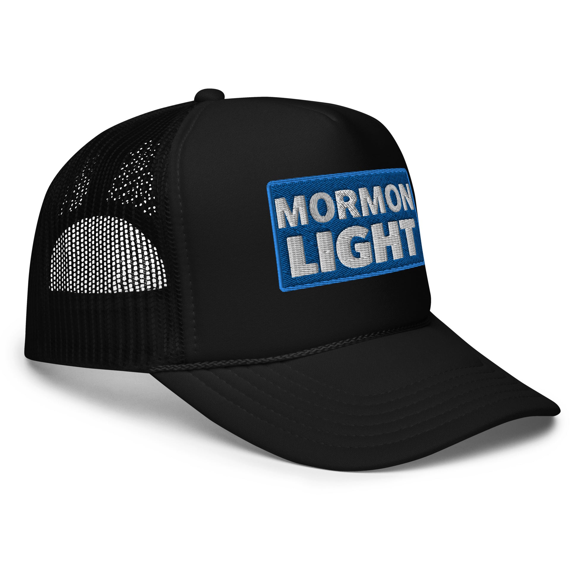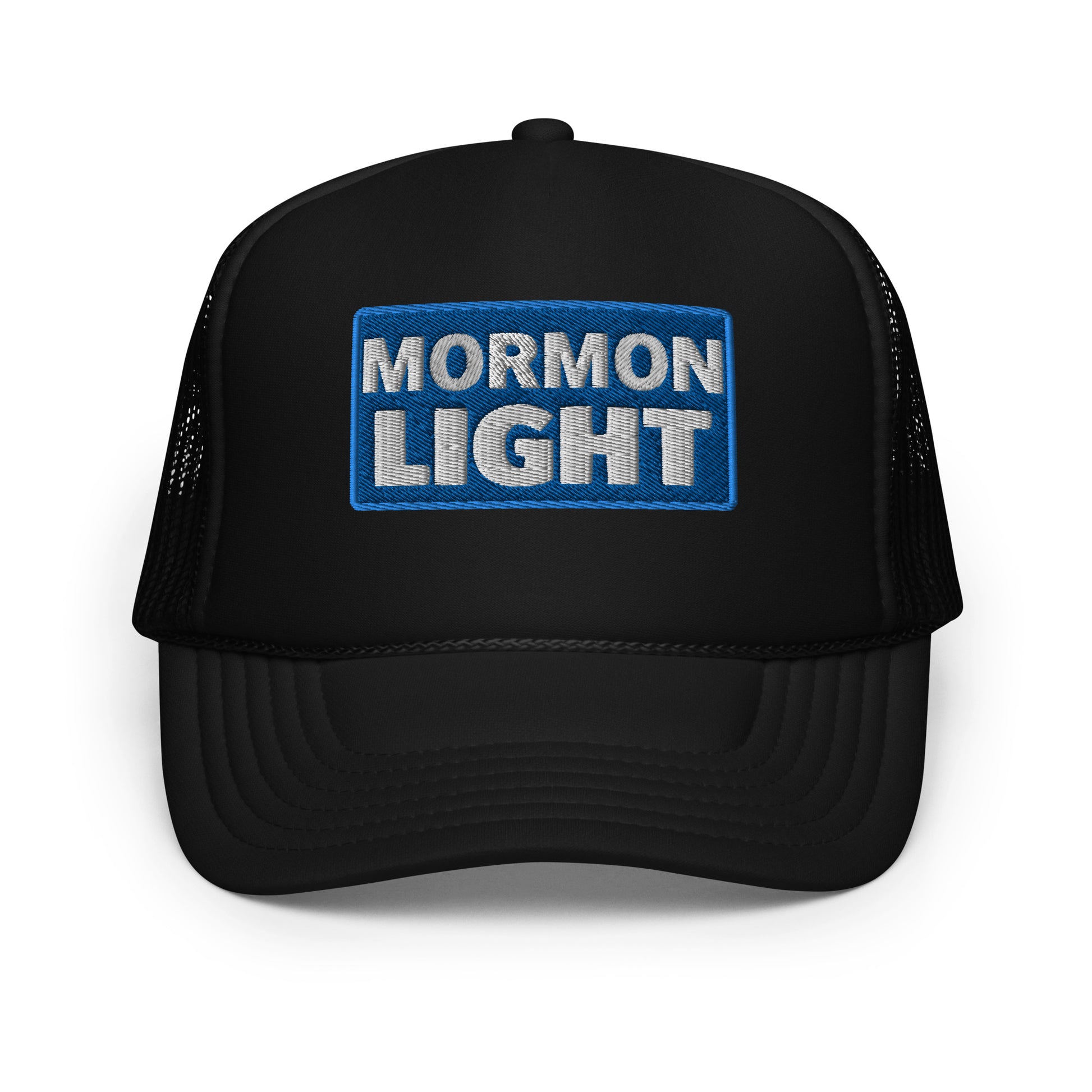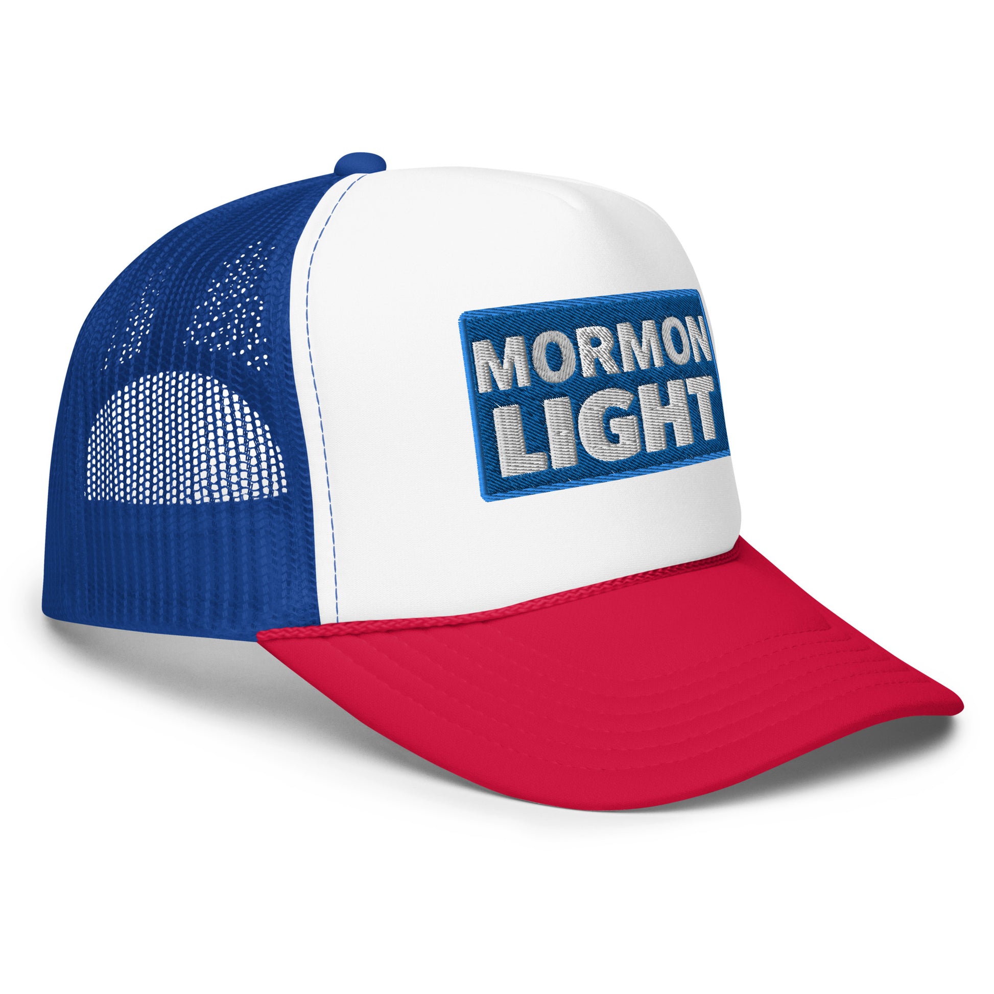Introducing the Mormon Light Trucker Hat – the perfect accessory for those who aren’t "all in" on the traditional Mormon lifestyle! Inspired by Secret Lives of Mormon Wives, this hat is for those who have embraced a more laid-back approach to faith, and maybe enjoy a cold drink or two while living life on their own terms.