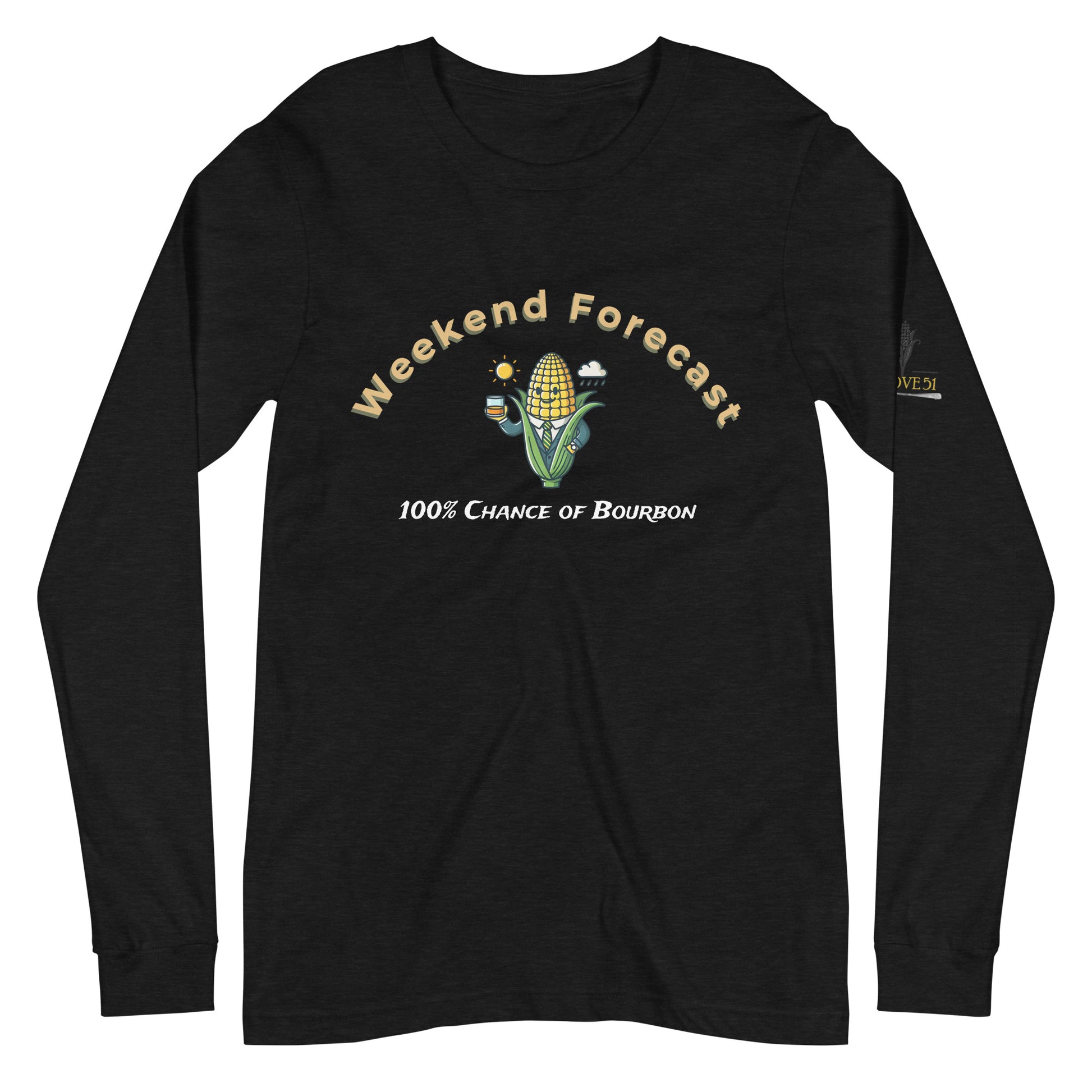 Made with soft, breathable fabric, it keeps you comfortable all day and night. The bold design features a playful "Weekend Forecast" message along with a corn graphic—because we all know bourbon starts with the perfect grain.